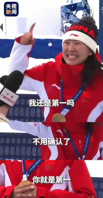 相信不少人都在年初二的某个时刻,刷到了这样一个视频:画面里,徐梦桃一边对着麦克风激动大喊“我还是第一吗?”,一边伸出手指向记者,等待对方肯定的回答——“不用确认了,你就是第一!”